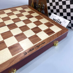 Bàn cờ được làm từ gỗ tự nhiên cao cấp, mang đến vẻ đẹp sang trọng và sự chắc chắn. Bề mặt bàn cờ được lót nhung mềm mại, tạo cảm giác êm ái khi di chuyển quân cờ và bảo vệ quân cờ khỏi bị trầy xước. Chất liệu gỗ kết hợp với lớp lót nhung màu sắc hài hòa, tôn lên vẻ đẹp tổng thể của bộ bàn cờ.