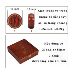 - Kích thước quân cờ: Mỗi quân cờ có đường kính 48mm và dày 18mm, tạo cảm giác chắc chắn, vừa vặn khi cầm nắm.